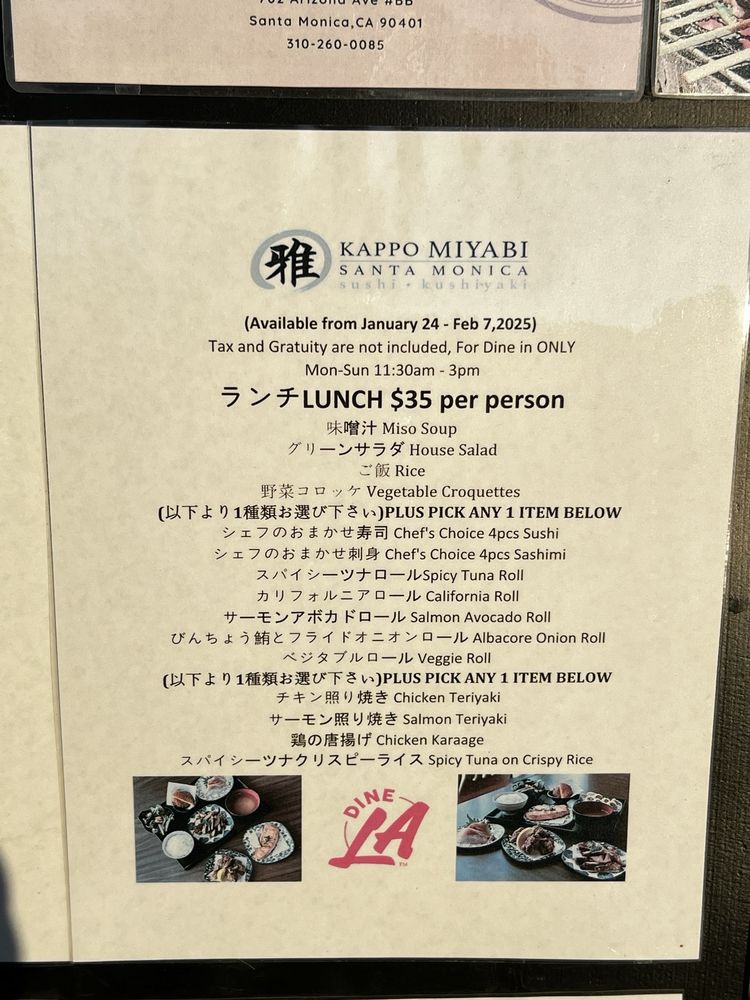 Welcome to Kappo Miyabi, a hidden gem nestled in Santa Monica, where innovation meets tradition in Japanese cuisine. This izakaya offers a diverse menu featuring fresh sushi, exquisite yakitori, and comforting ramen, each dish beautifully presented and bursting with authentic flavors.